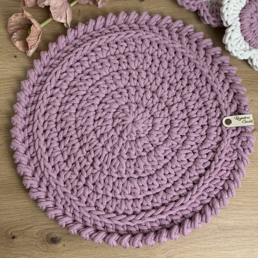 Ez a tányéralátét ugyanabból a különleges, vastag pamutfonalból készült, mint a virág alakú poháralátéteim – így tökéletes kiegészítője lehet egy harmonikus, meleg hangulatú asztalnak. Kézzel horgoltam, sok-sok odafigyeléssel, hogy ne csak szép, de igazán tartós darab legyen.